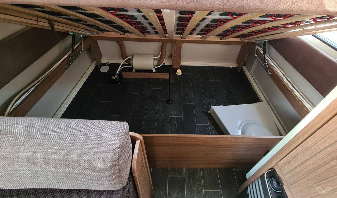Umfassende Grundversorgung: Zur serienmäßigen Ausstattung gehören ein Frischwassertank (40 Liter), ein rollbarer Abwassertank (25 Liter) mit Geruchsverschluss und die Vorbereitung für die Gasversorgung.